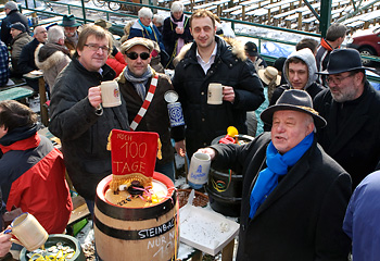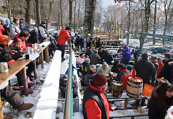 Immer am Faschingssonntag treffen sich die Erlanger Bier- und Bergfans auf dem Erich-Keller und freuen sich auf den Berganstich in etwa 100 Tagen. Das diesjährige Treffen fand am 10.02.2013 bei Sonnenschein und klierender Kälte statt.