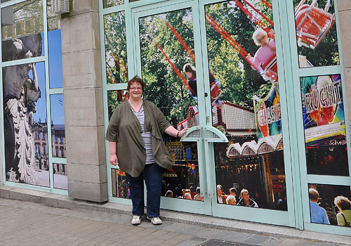 Das City-Management Erlangen hat am 25. Februar 2010 den verwaisten Schaufenstern der Grande Galerie einer kosmetischen Behandlung unterzogen und interpretiert so das Thema "Kunst in Erlangen" einmal neu. Die Fenstergalerie "28 Meter Erlangen" repräsentiert auf schutzlaminierter Digitaldruckfolie ein authentisch-kompaktes Abbild der Hugenottenstadt mit meinen (Sabine Ismaier) Fotografien. (Textauszug aus dem Presseartikel vom City-Management)