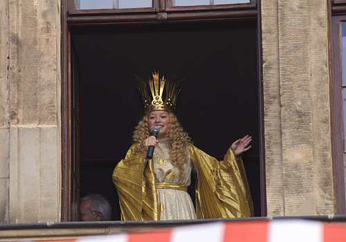 Das Nürnberger Christkind (Johanna Heller) besuchte am 09.12.2009 Mittag den Erlanger Weihnachtsmarkt und sprach aus einem Fenster des Schlosses ihren Prolog zu den zahlreichen Anwesenden. Im Anschluss verteilte sie Süßigkeiten an die Kinder.