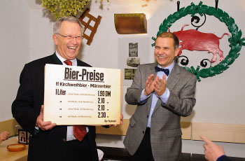 Enthüllung Historisches Wirtshausschild vom "Roten Ochsen" im Steinbach-Brauereimuseum im Rahmen einer kleinen Feier am 21. Dezember 2009