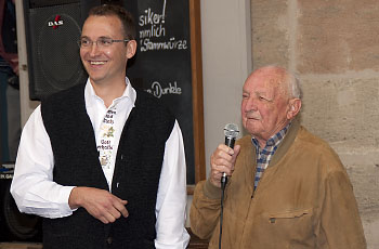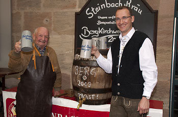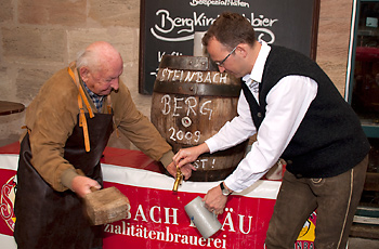 Anstich: Herr Hermann Seißler, Schöpfer des Bergkirchweihmodells im Brauereimuseum