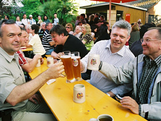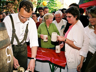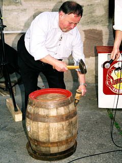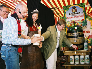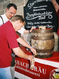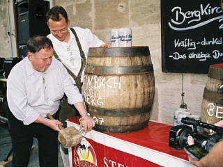 Anstich: Bergkirchweihbier - Büttnermeister Hans Weis und das Bergweizen - Pächter des Helbigkellers Mark Raymond